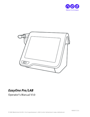 Printing optionsPCL standard, direct to printer or via networkData managementEasyOne Connect (SQLite, MS SQL Server)ExportHL7, XML, GDT, via USB, LAN NetworkData linksEthernet port, USB, option to upgrade to WLANNo. of tests>10‘000 testsAge rangeSpirometry ≥4 years, DLCO ≥6 yearsDimensions27 x 33.5 x 27 cm (H x W x D), 7.3 kg